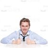 Full-sized cutout picture of a young man is sitting at the table and holding fork and knife. He is looking at the camera and smiling. The guy is happy and pleased. He prepared cutlery anticipating a delicious dinner. The man is wearing a white shirt and black tie. The cutout image can be used to illustrate a handsome character in any kind of web and print related projects. The photo is available in few different sizes to fit the needs of each customer. The presence of a transparent background makes adding the image on a slide easy and convenient. Feel free to pick any of our people cut outs you need to create an amazing educational project.