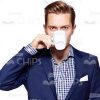 Cutout Character of Handsome Young Man in Dark Blue Suit Drinking from a White Cup