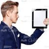 Profile View Standing Young Man Presenting Tablet Cutout Photo