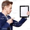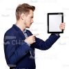 Profile View Standing Young Man Presenting And Pointing At Tablet Cutout Photo