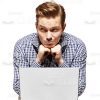 Cutout Photo Of Thoughtful Young Man With Laptop