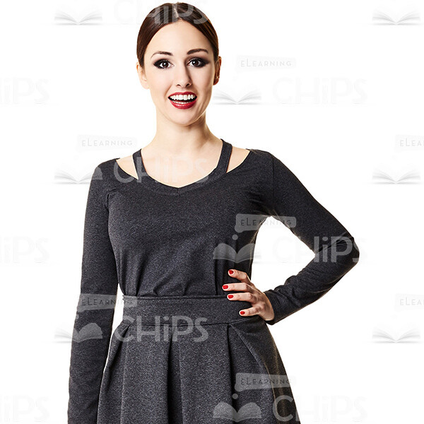 High-quality cutout photo of a pretty young woman standing upright while holding a left hand on a waist. She’s smiling while looking at the camera. Wearing a casual black dress. The photo can be used to illustrate a handsome female character in any kind of web-design project. It is available in few different sizes such as M, L and XL. We’ve collected lots of cutout people images taken by professional photographers. Feel free to choose the one that suits you best among dozens of variations of poses, gestures and facial expressions.