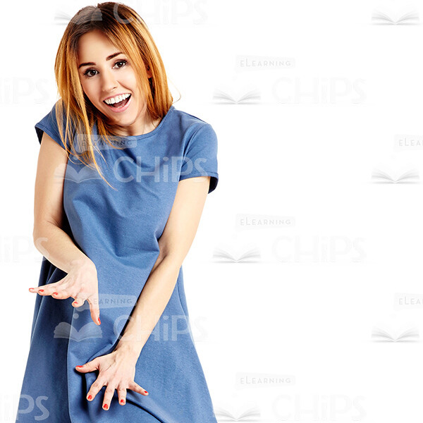 High-quality cutout picture of an emotional young lady gesticulating with both hands. She looks excited and smiling. Wearing a casual blue dress. The photo can be used to illustrate a handsome female character in any kind of web-design project. It is available in few different sizes such as M, L and XL. We’ve collected lots of cutout people images taken by professional photographers. Feel free to choose the one(s) that suits you best among dozens of variations of poses, gestures and facial expressions.