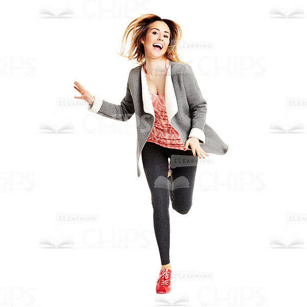 High-quality cutout photo of a pretty young girl running towards camera. She looks happy and excited. It seems that a girl is extremely satisfied with something. The photo would be useful for creating web-design projects (e learning courses, presentations, marketing messages, etc.). It’s available in few different sizes such as M, L, and the full-resolution – XL. Feel free to pick any of them that meets your requirements. We’ve collected lots of cutout people images with dozens of poses and facial expressions to fit the needs of every e-learning developer.