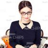 Cutout Image of Pretty Young Woman in Glasses Sitting in Armchair