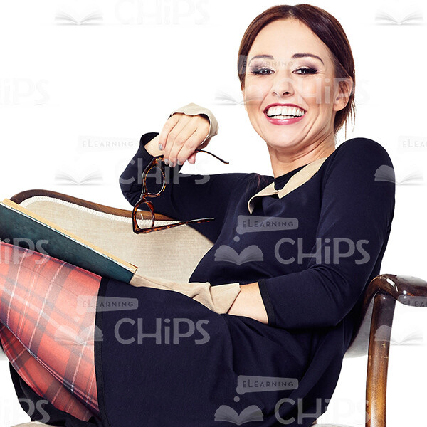 Cutout Image of Laughing Young Woman Lolling in an Armchiar with a Book