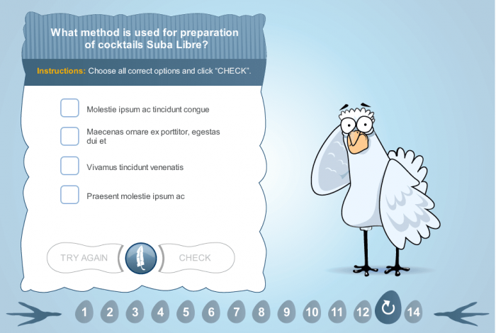 The course transfers results to LMS according to SCORM, AICC, Tin Can API standards. It’s possible to use it on mobile devices in off-line mode by downloading Articulate Mobile Player for iOS and Android. You can easily find them on the AppStore and Google Play. The course starter template is compatible with Articulate Storyline 3 and 360 versions. Storyline templates are very popular among e-course developers. This tool offers a wide range of features that makes storyline templates unique and innovative.