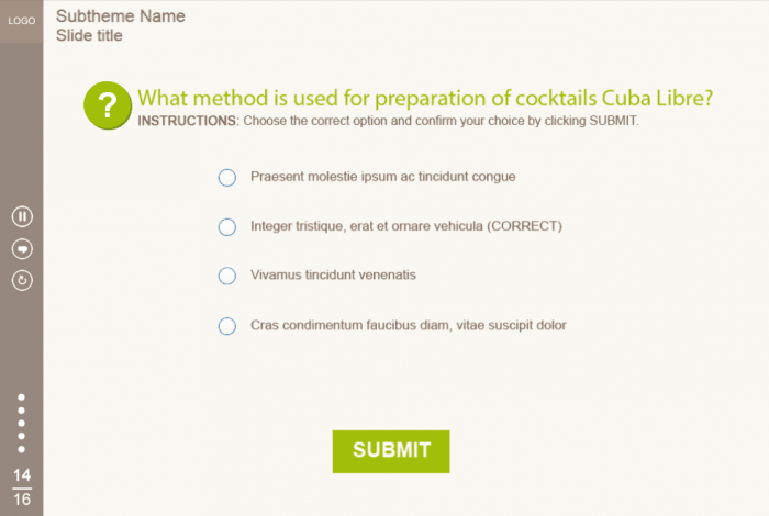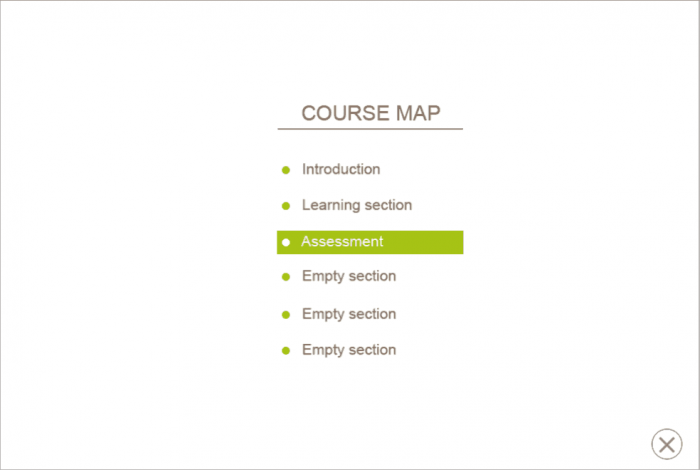 Captivate Course Template With Two-Level Menu is a superior tool for creating your own e-learning course. According to well-directed navigation key it perfectly runs on PC. Designed in a light-beige colours this template easily grabs customers attention. It’s recommended to use on electronic devices with screen size 12 inches or more.