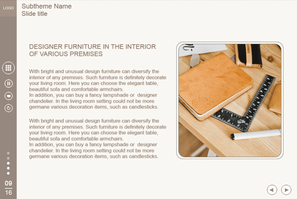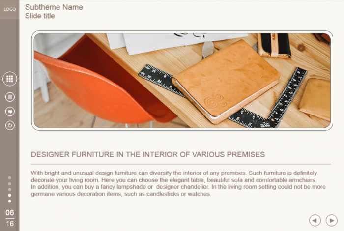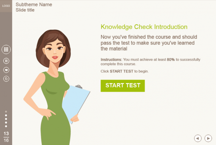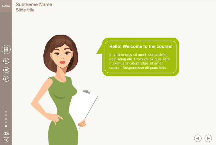 It has 16 sample slides that will be enough to develop your own course. The adobe captivate template contains character, flip-chart image, three versions of image slides; it’s already designed and prepared for usage.