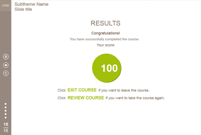 The course transfers results to LMS according to SCORM, AICC, Tin Can API standards. Captivate Templates are among the most popular elearning templates due to a wide range of features and easy customization.